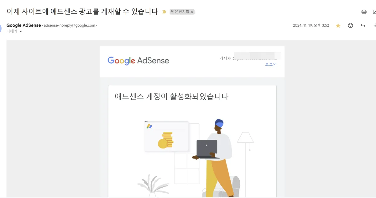글 11개를 쓰고 애드센스 승인신청을 했고, 글 14개쯤 썼을 때 구글로부터 승인되었다는 메일을 받았다.